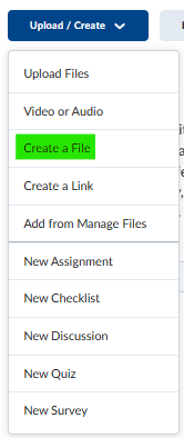 Click on the desired module and then click on the Upload/Create: Create a file