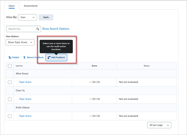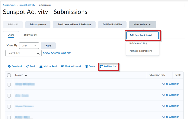 Instructors can now provide bulk feedback to all students who submitted assignments or discussions.